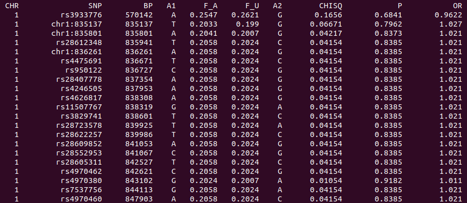 그리고 plink의 단점중 하나는 결과가 뭔가 tsv파일인것 처럼 보이지만 실제로는 그렇지가 않습니다. (정말 화나는 점)