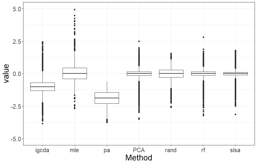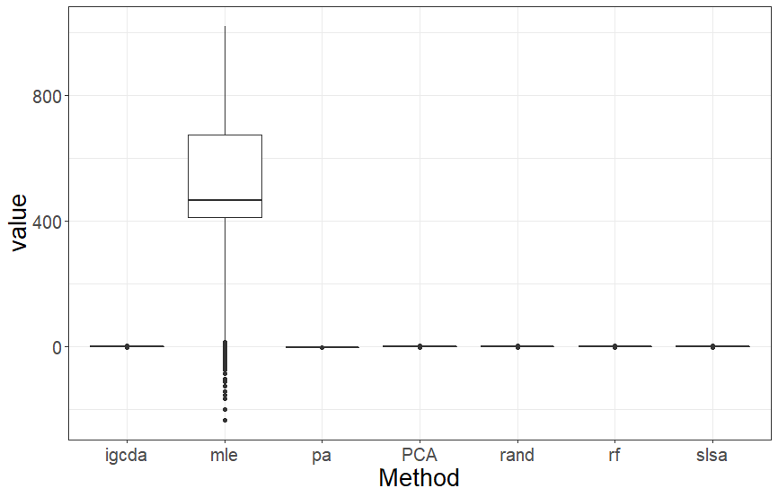 mle를 제외하고 비슷한 범위를 갖는 방법들이 있습니다. (igcda, pa) (PCA, rand, rf, slsa)