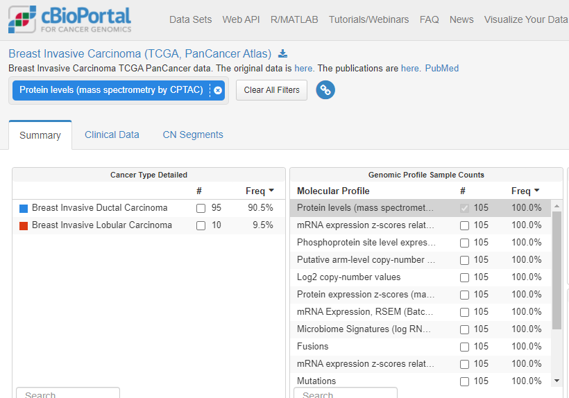 단백질 양을 확인하기 위한 방법은 여러가지가 있습니다. 그중에서 우리가 쉽게 데이터를 볼수있는 방법은 Reverse Phase Protein Array (RPPA)와 Mass Spectrometry (MS) 데이터가 아닐까 싶습니다.