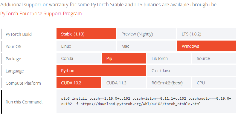 위 사이트에서는 pytorch가 안정적이게 사용할 수 있는 버전을 확인할 수 있습니다.