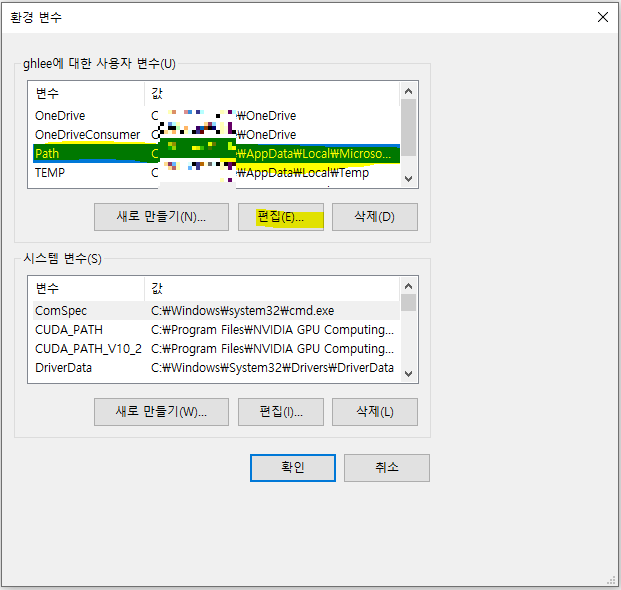 PATH 누르고 편집을 누르신 다음에