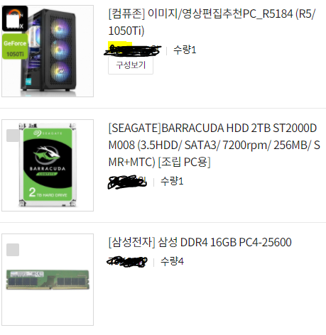 스펙은 다음과 같습니다. (그냥 컴퓨존에서 영상편집용 컴퓨터를 메모리 업그레이드해서 샀습니다.)