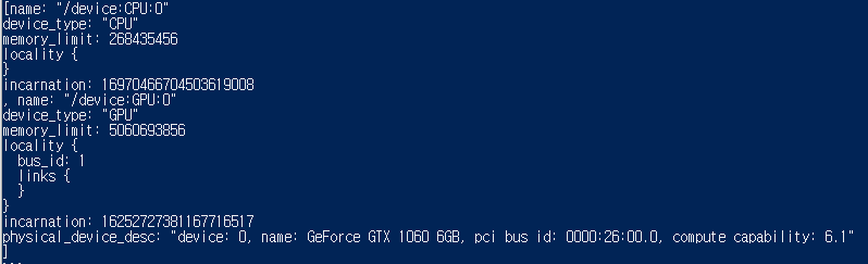 성공했다는 무엇인가가 나오고 gpu를 확인하기 위해 다음을 추가로 쳐줍니다.