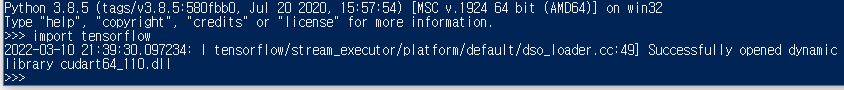 그리고 나서 python을 틀고 tensorflow를 import시키면