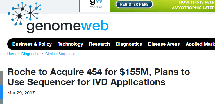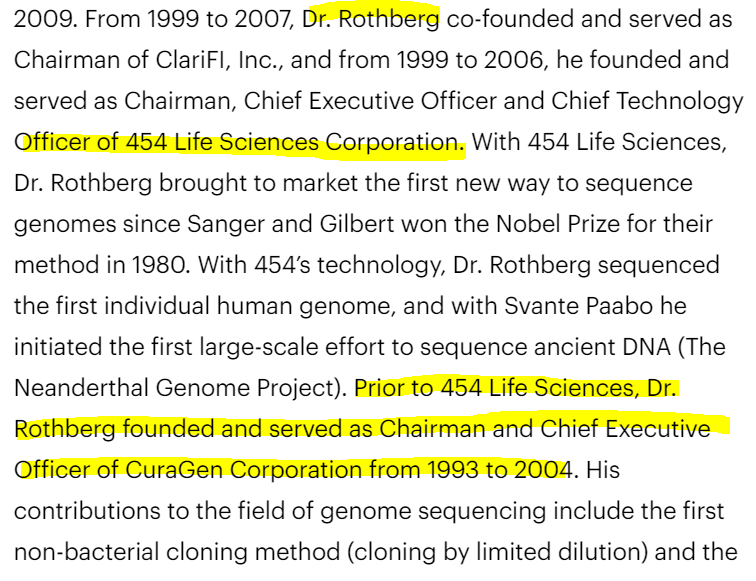 이렇게 Rothberg는 sequencing 기기를 만드는 기술에는 빠삭한 지식이 있을 수 있고, 그 밑에 동료들과의 네트워크도 잘 되어 있을 것입니다.