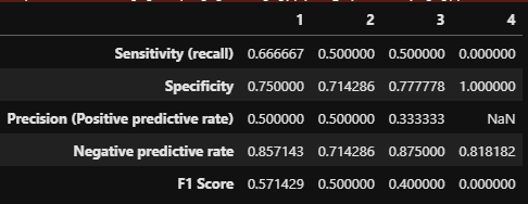 columns = list(range(cfx.shape[0])),index = ['Sensitivity (recall)','Specificity',