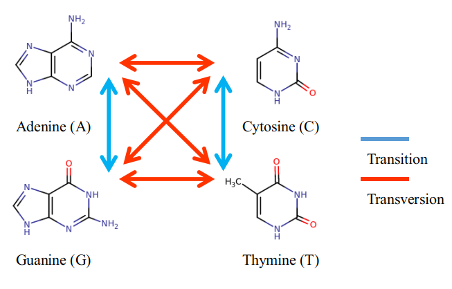 이러한 정보를 봤을때 들었던 생각은 Transversion이 좀 더 많이 일어날텐데 실제로 그럴까? 라는 생각과