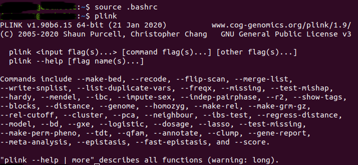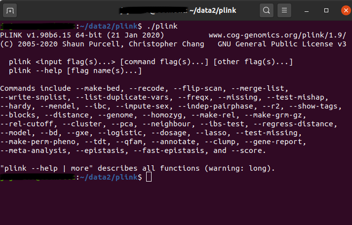 다음과 같이 ./plink 를 치시면 돌아가게 됩니다.