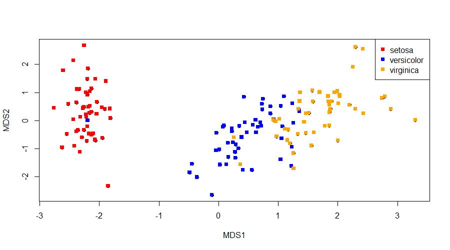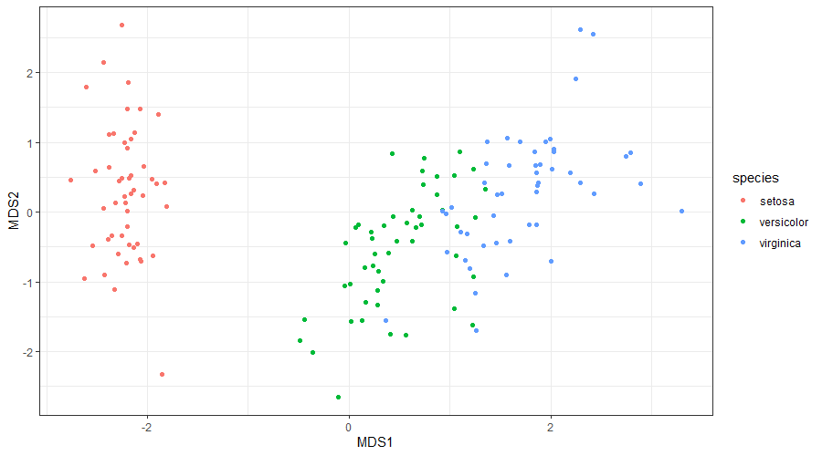 mds.data=data.frame(species=iris$Species,X=mds_anal$points[,1],Y=mds_anal$points[,2])